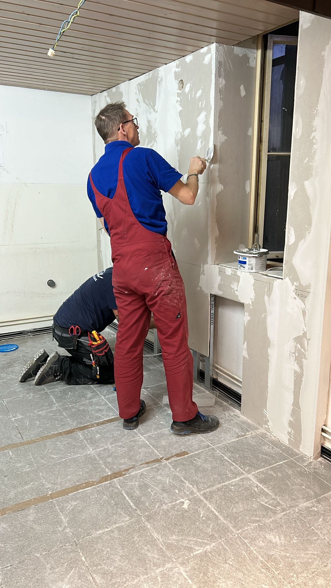 14.3. Heute Morgen wird schwer gestrichen und tapeziert.