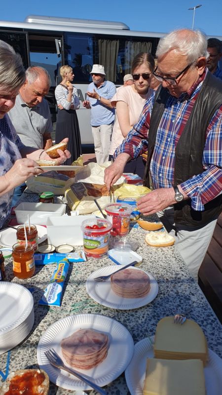 Zunächst ging es per Bus zum Schiffshebewerk Lüneburg | Scharnebeck. Unterwegs haben wir ein zünftiges Frühstück eingenommen, das wieder von unseren Helferinnen Sabine Vogt und Petra Giesler organisierte wurde.